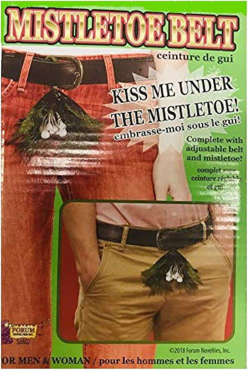 A little festive, a little flirty. This adjustable belt features a playful plastic mistletoe sprig hanging from the buckle — perfect for holiday parties, gift exchanges, or letting someone know you’re open to a kiss! Turn any room into a mistletoe moment. Guaranteed to spark laughs, photos, and holiday mischief.